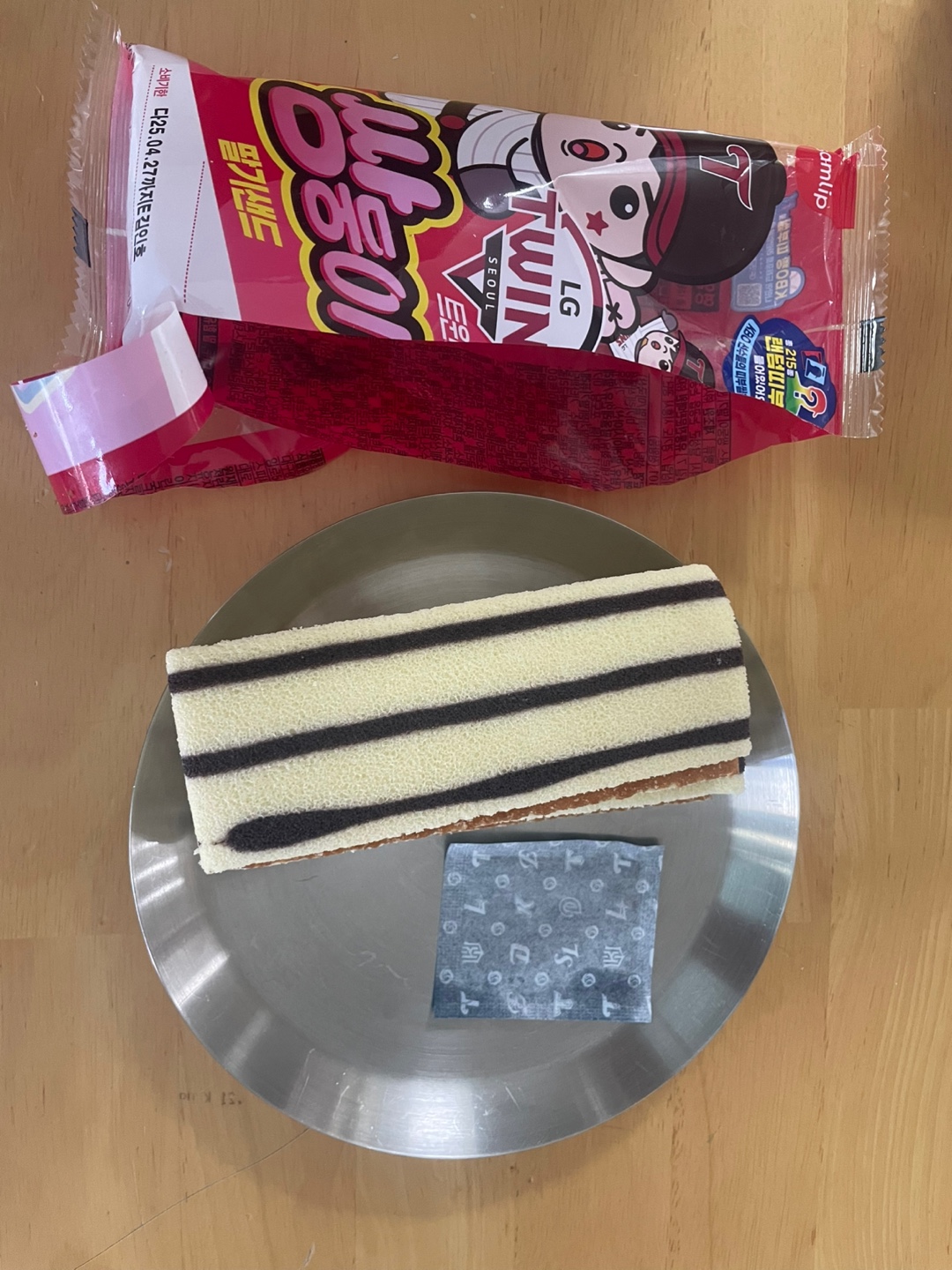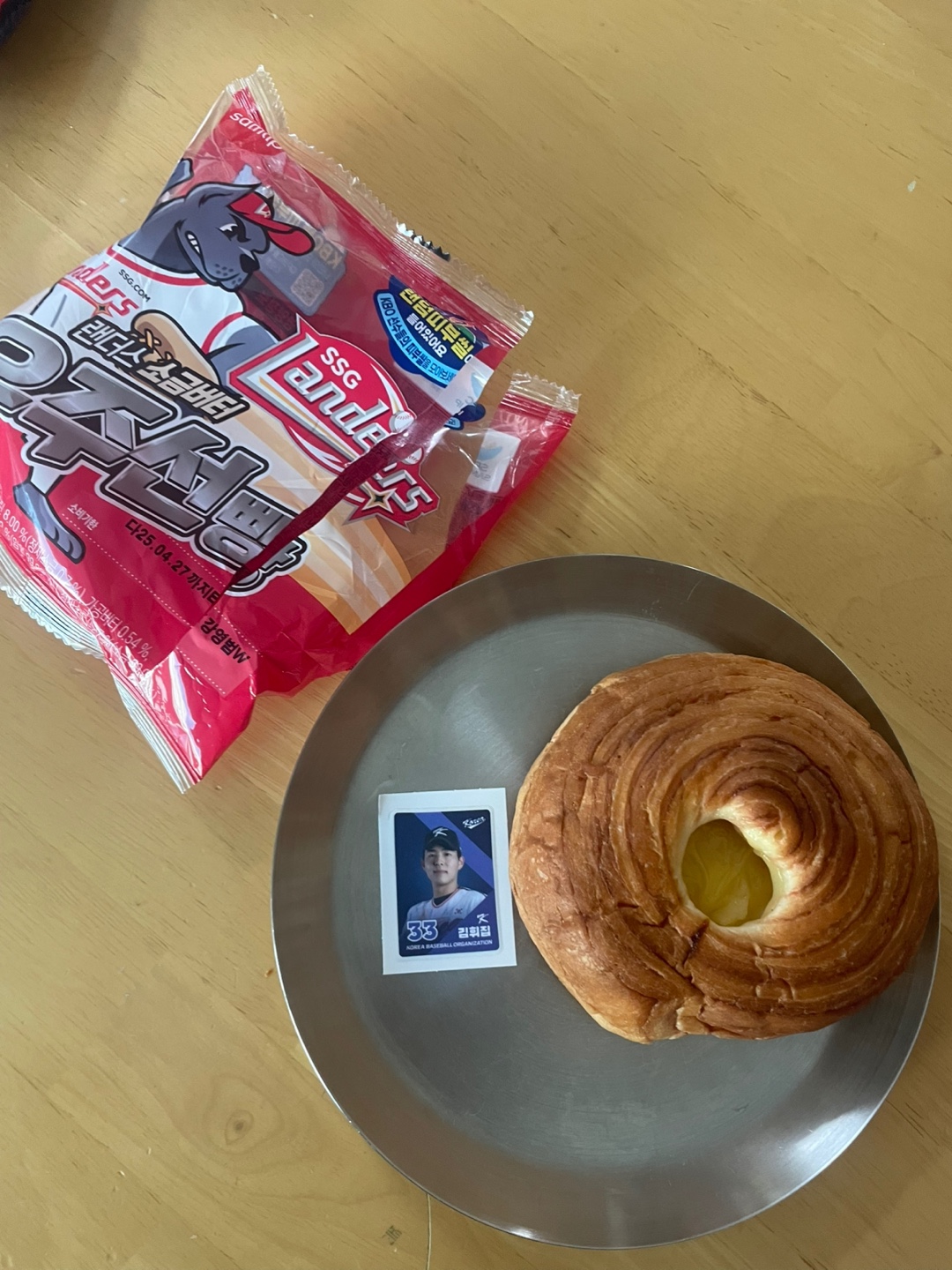 곰발바닥 모양의 귀여운 빵에 꿀이 스며든 디저트예요. 부드럽고 달콤한 맛이 중독적! 4봉을 샀는데, 띠부씰로는 삼성 이재현과 기아 김태군이 나왔어요.