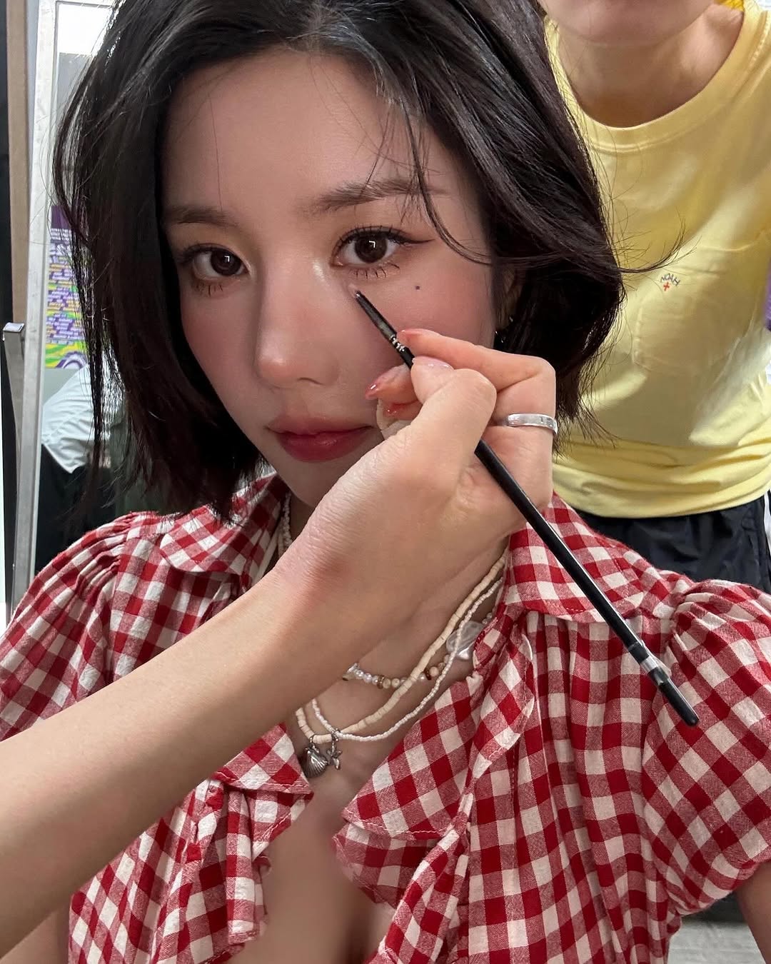 그녀의 메이크업은 여름 축제에 어울리는 청량한 컬러 팔레트를 사용했으며, 방수 제품으로 땀과 물에도 무너지지 않는 완벽한 룩을 완성했다고 해요.